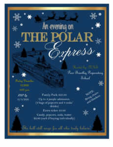 All aboard the Polar Express! Mark your calendars for this fun movie under the stars on Friday, December 12 at 6:00 PM. Fill out the form below to purchase your tickets! Additional concessions (candy, popcorn, water, and soda) available for $2 each- CASH ONLY
