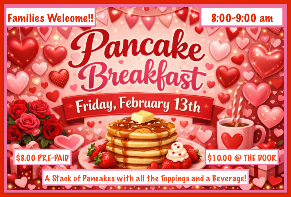 The Class of 2026 invites you to a pancake breakfast on Friday, February 13 from 8:00-9:00 AM. Parents/ guardians may park in the back parking lot and accompany your child to the breakfast. Advance tickets are $8 per person. Day of tickets are $10 at the door.