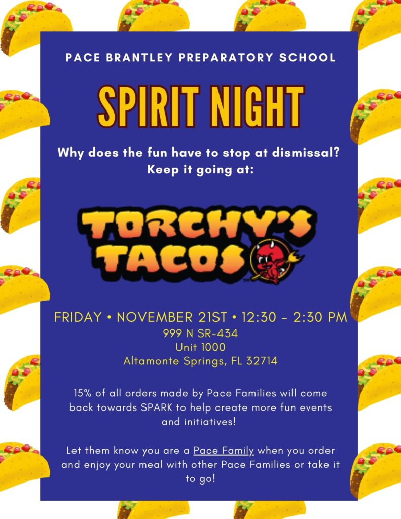 Join SPARK at Torchy’s Tacos after early dismissal on Friday, 11/21! 15% of orders placed by PBPS families will be donated to SPARK and will help fund other fun activities.
